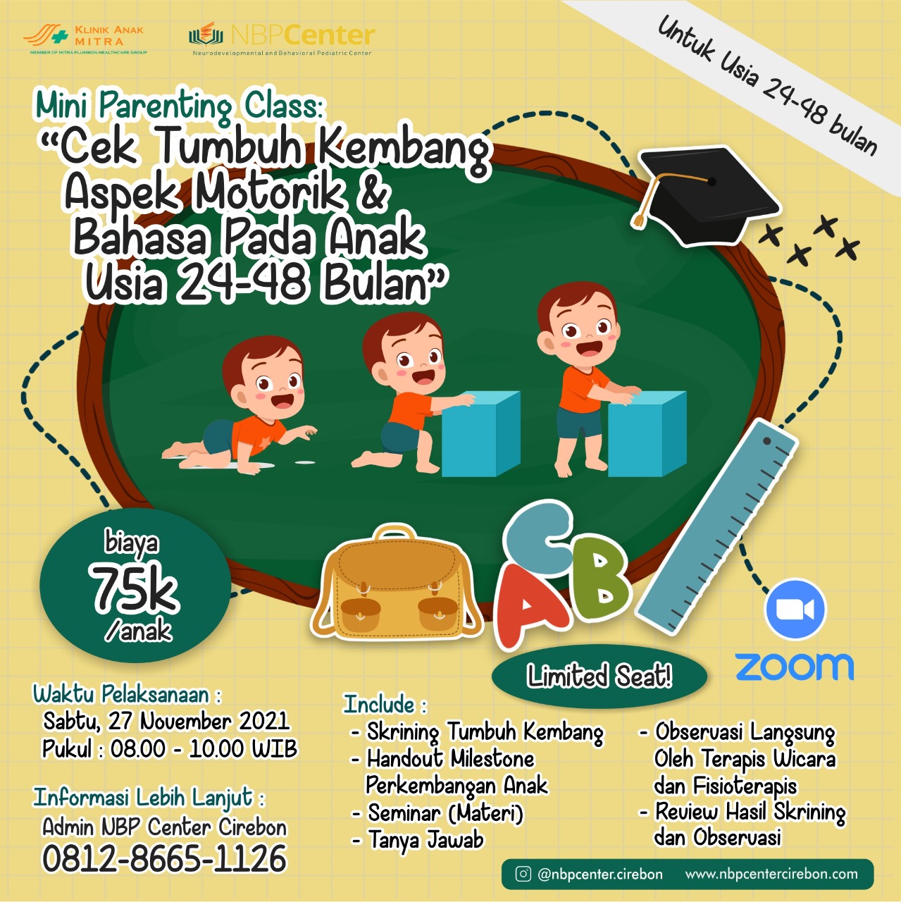 Dear Parents, NBP Center Cirebon menghadirkan kembali acara “Mini Parenting Class: Cek Tumbuh ....